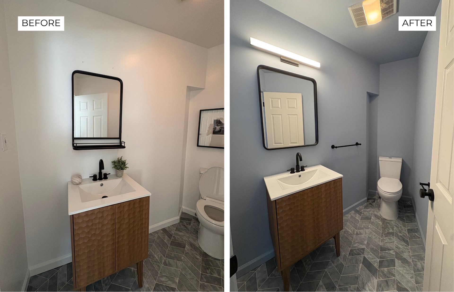 - Main level powder room refresh (new light fixture, mirror, added towel bar and paint)