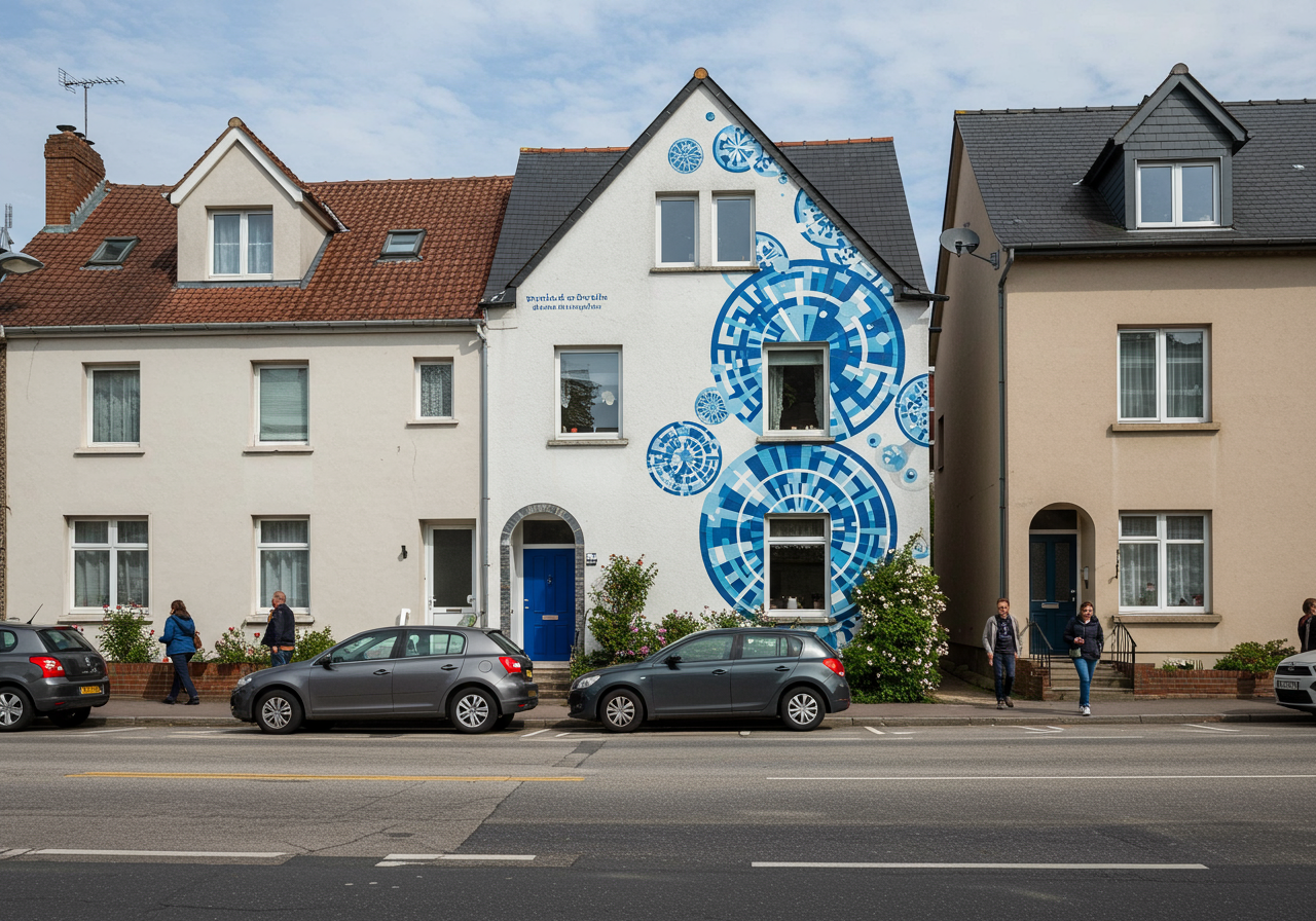 If you take a walk down Marina Boulevard, you can’t help but notice one standout house—a 1930 Spanish Revival home that’s been brought dizzyingly into the 21st century thanks to a tattoo of kaleidoscopic swirls on its otherwise white and gray-shuttered facade.